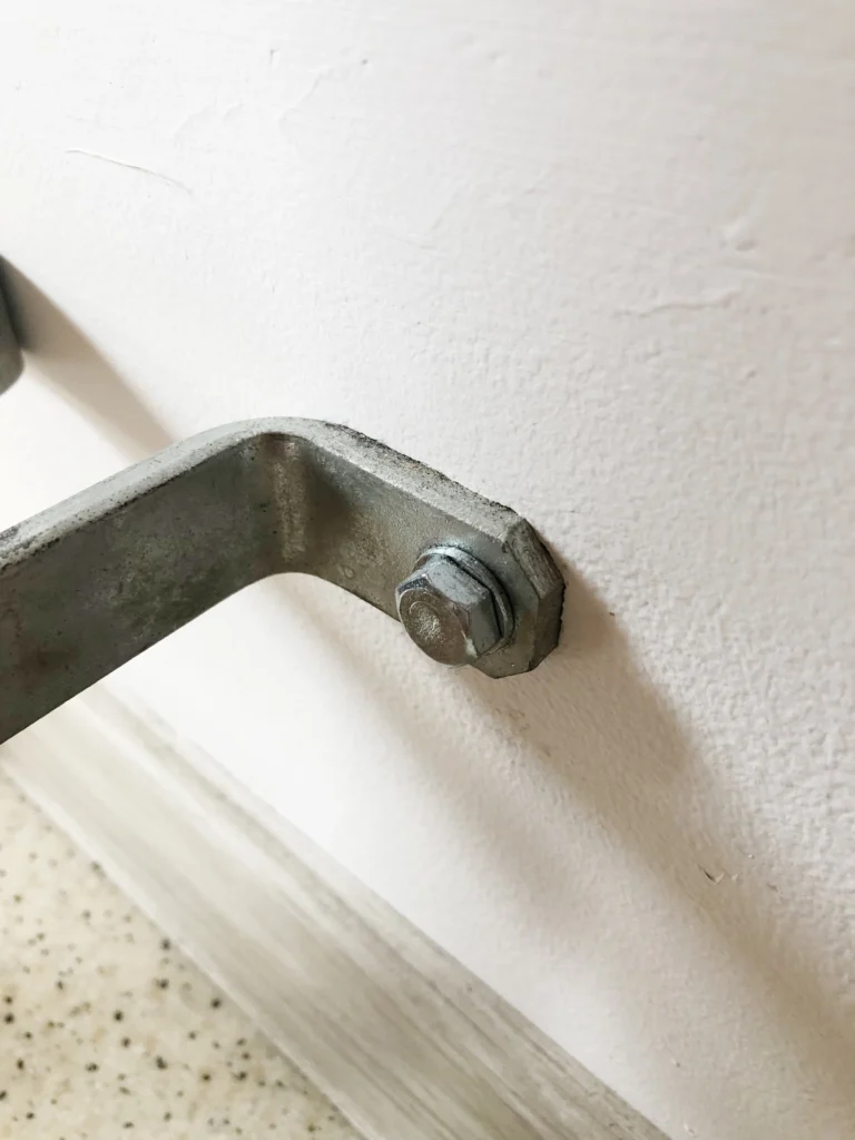 - Należy używać do montażu śrub z łbem sześciokątnym, najlepiej na plastikowym kołku rozporowym o średnicy 10 mm i długości najlepiej 10 cm. Dobrze jest też zastosować podkładkę pod śrubę (jak na zdjęciu). Wtedy otwory w ścianie wiercimy wiertłem „dziesiątką” (tzw. „fi dziesięć”) o odpowiedniej długości.