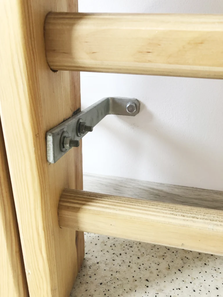- Montaż drabinki do ściany musi być zawsze czteropunktowy (nie opisuję montażu sufit-podłoga), a punkty te powinny znajdować się relatywnie daleko od siebie (jak na zdjęciach).